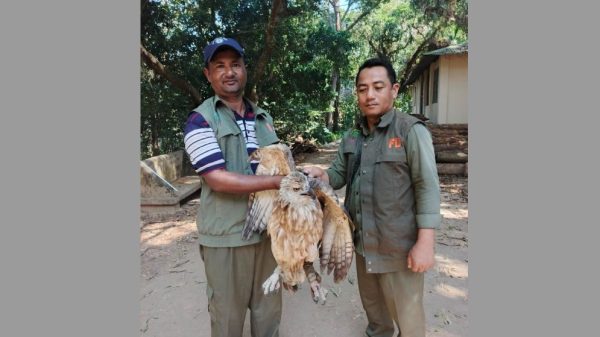 চট্টগ্রামের সাতকানিয়ার একটি বিপন্ন প্রজাতির পলাশ মেছো ঈগল উদ্ধার করেছ বন বিভাগ।