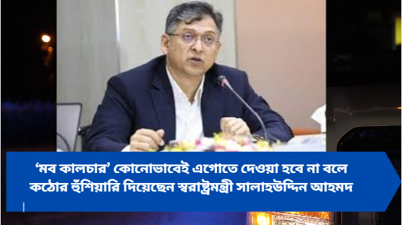 ‘মব কালচার’ কোনোভাবেই এগোতে দেওয়া হবে না বলে কঠোর হুঁশিয়ারি দিয়েছেন স্বরাষ্ট্রমন্ত্রী সালাহউদ্দিন আহমদ