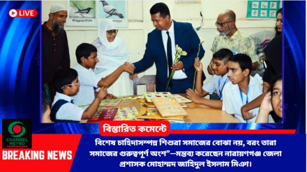 বিশেষ চাহিদাসম্পন্ন শিশুরা সমাজের বোঝা নয়, বরং তারা সমাজের গুরুত্বপূর্ণ অংশ”—মন্তব্য করেছেন নারায়ণগঞ্জ জেলা প্রশাসক মোহাম্মদ জাহিদুল ইসলাম মিঞা।